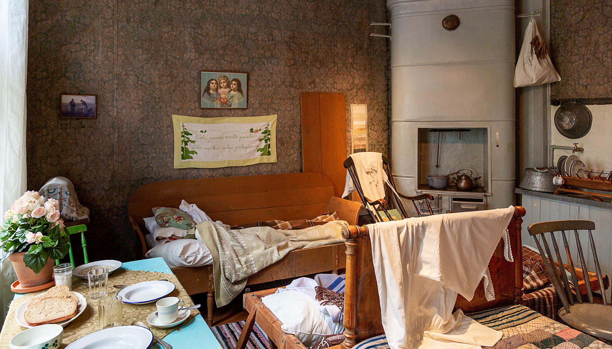 Vanhin sisustus kertoo talossa vuonna 1911 asuneen Emilin, tämän vaimon ja kolmen lapsen arjesta yhdessä huoneessa. Ulkotyömies Emilin hellahuone oli aikakausi huomioiden hyvin varustettu työläiskoti, sillä siellä oli uudenaikainen kakluuni ja vesijohto. Viisihenkinen perhe kuitenkin nukkui, söi ja vietti vapaa-aikaansa tässä samassa huoneessa.
