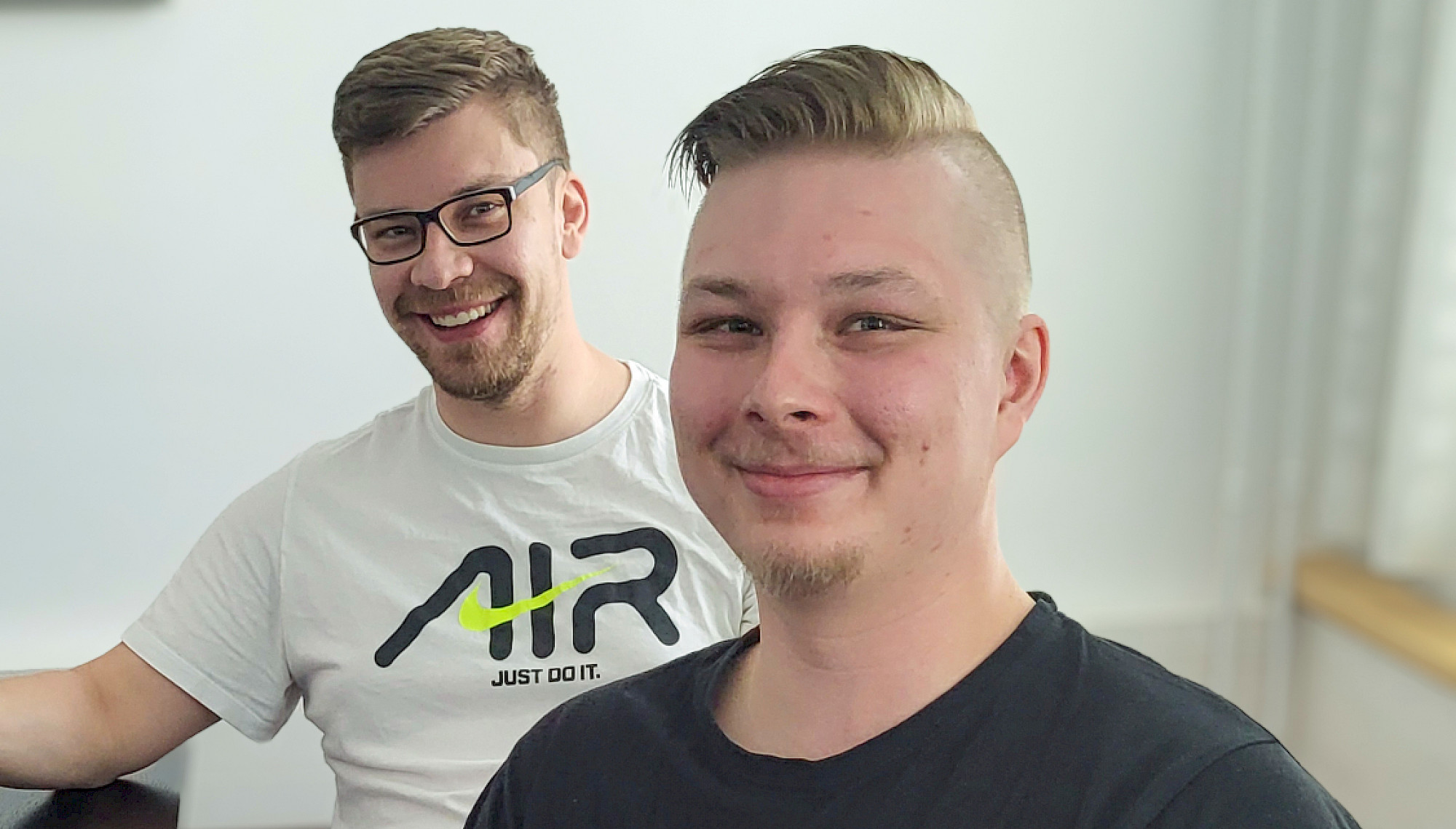 Nuorisovaliokunnan jäsenet yhdistelmä­ajoneuvonkuljettaja Jere Junkkari (edessä) ja linja-autonkuljettaja Atte Haapala olivat opiskelemassa, miten opiskelijapuheluita soitetaan.