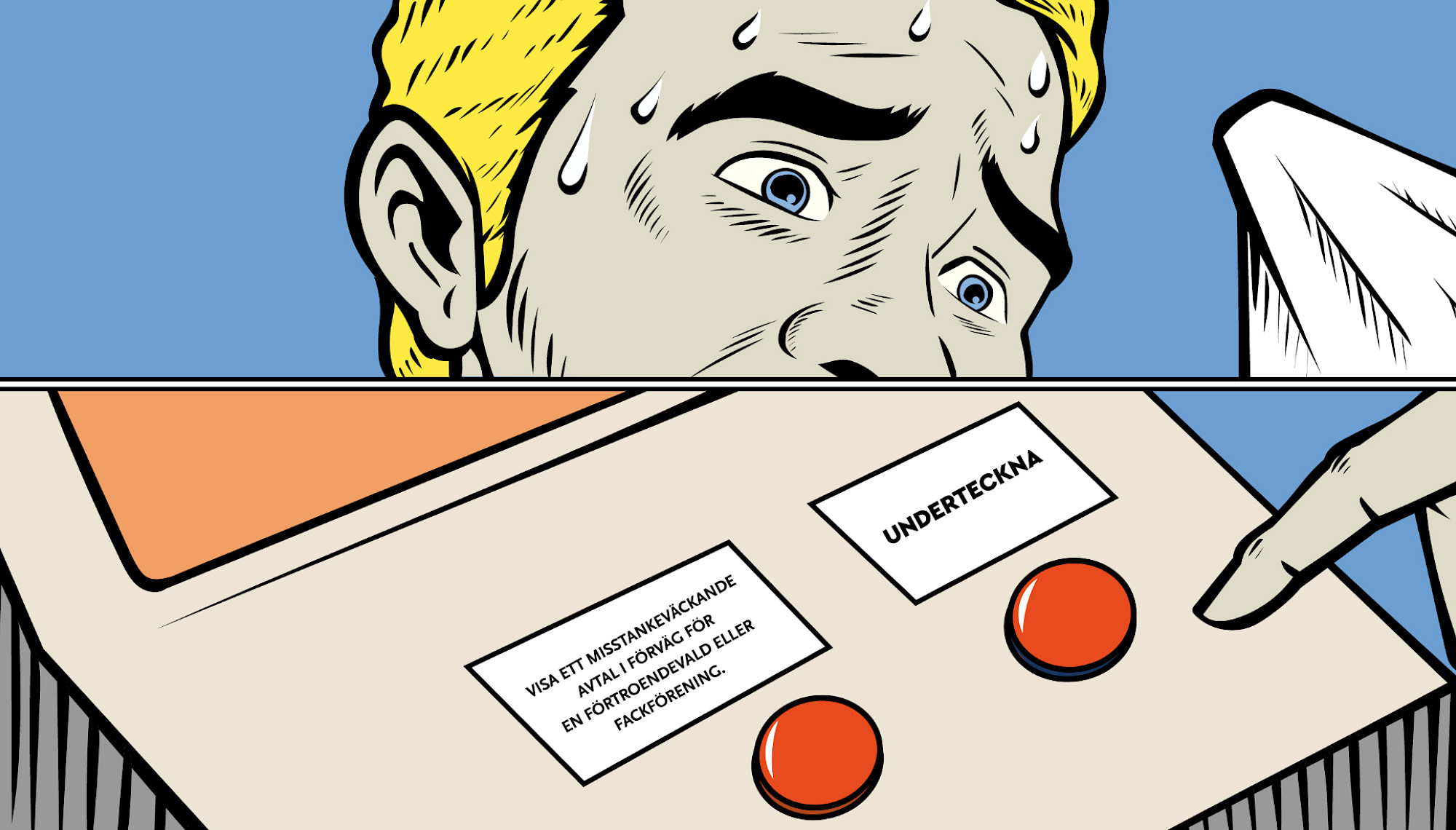 I värsta fall kan arbetstagaren förlora mycket pengar genom att skriva under på ett ogynnsamt papper. Det är därför Seppänen och AKT:s avtalschef Juha Anttila har ett tydligt budskap: Skriv aldrig hastat på något.